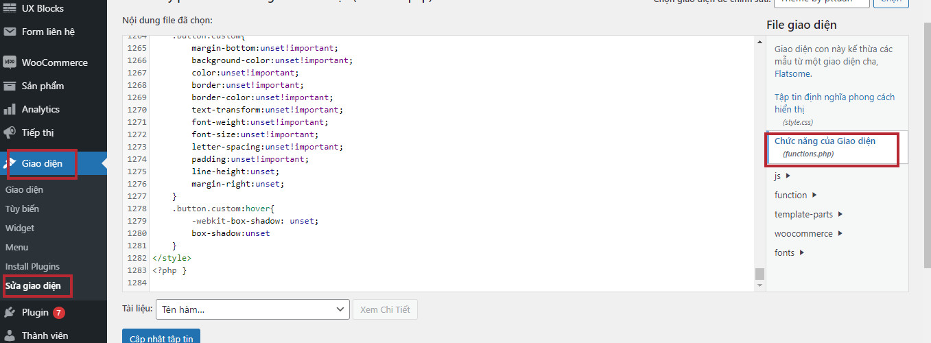 sau đó các bạn dán đoạn function sau vào file functions.php nhé